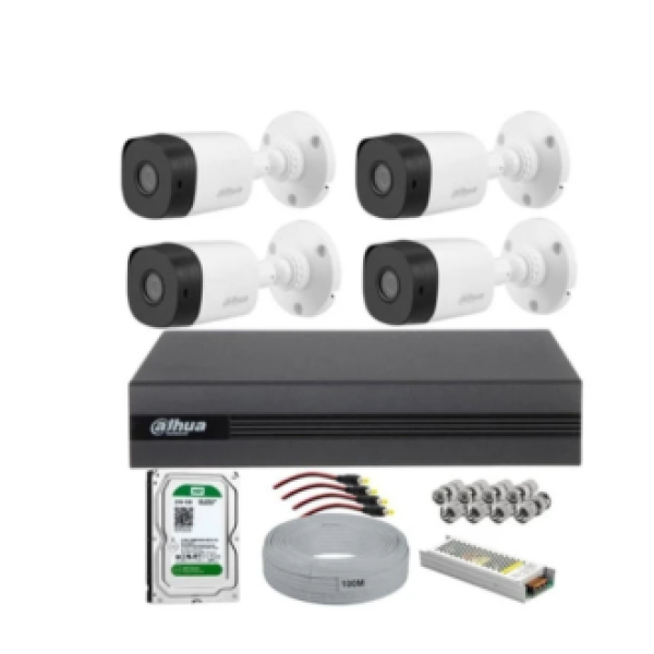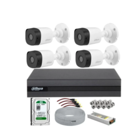 Dahua 4 kameralı güvenlik kamera seti Dahuaxvr1b04 4 kanal hdcvı xvr kayıt cihazı. H.265video sıkıştırma. Hdcvı/ ahd / tvı / cvbs / ıp video girişlerini destekler. Maks.5/10 kanal ıp kamera girişi, her kanal 2mp / 5mp'ye kadar; max 20 /40mbps gelen bant genişliği. Koaksiyelkablo üzerinden uzun iletim mesafesi. 6tb'a kadar 1 sata hdd'yi destekler. Dahuahac-B1a21p-0360b 2mp hdcvi ır bullet cooper 1080p analog kamera. Maks. 30fps@1080p Hd ve sd çıkış değiştirilebilir 3,6 mm sabit lens (6 mm opsiyonel) Maks. Ir uzunluğu 20m, akıllı ır Ip67, dc12v. 1 adet 500 gb hdd. 1 adet 100 mt 2+1 cctv kablo. 1 adet 10 amper adaptör. Bnc ve power jack.;