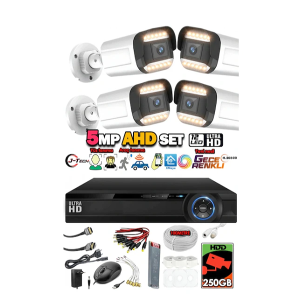 J-TECH 5MP 7070 renkli gece görüşlü 4 lü akıllı güvenlik kamera seti, ev ve işyerinizin güvenliğini en üst seviyeye çıkarıyor. Yüksek çözünürlüklü 5MP kameralar sayesinde net ve detaylı görüntüler elde etmenizi sağlar.